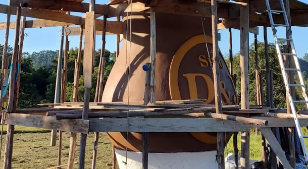 Segundo Joel, outro obstáculo foi criar a estrutura da base. “Tivemos que envolver um engenheiro para este cálculo, uma vez que a cuia ficaria alta e pesada, e correria o risco de tombar com o vento”. O vendedor lembra que foram necessárias 10 toneladas de concreto para suportar o peso do monumento.