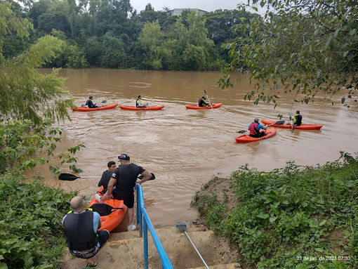 - Saída para passeio de caiaque no Rio Itajaí-Açu
