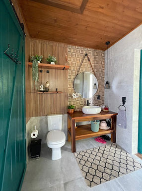 - Grande área aberta e coberta com churrasqueira e fogão à lenha