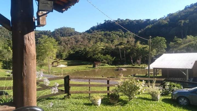 O Sítio Paraíso Feliz oferece amplo espaço para locação de eventos com infraestrutura como cozinha, banheiros, mesas e bancos.